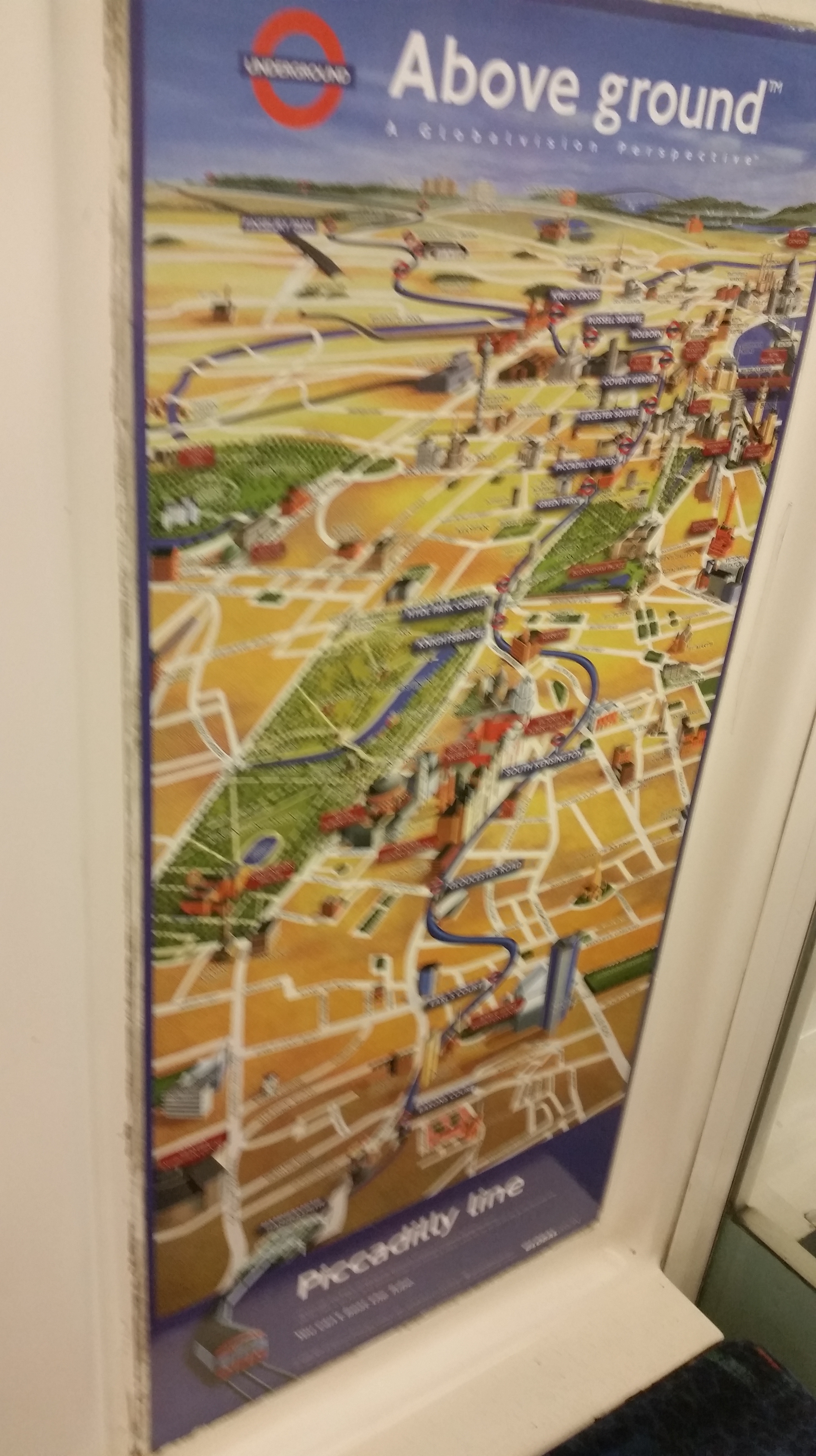 Going Underground. Within an hour of landing at Heathrow we jumped on the Piccadilly Line to head out to our destination. My first reaction to the Underground was that it was remarkably like the MBTA in Boston, with its color-coded lines and specific neighborhood stops. I pretty much grokked the transportation bit right away.