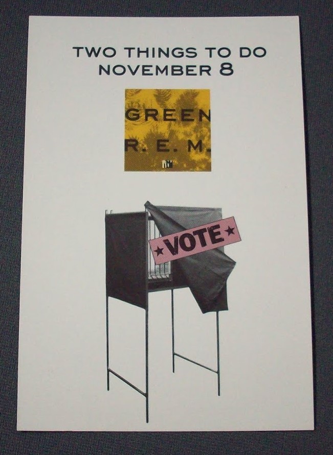 REM has always worn their politics on their sleeves (this particular album contains a recurring theme of environmentalism), and in the release of Green was actually timed to coincide with the 1988 Presidential election with a brilliant promo postcard sent to record stores and radio stations: