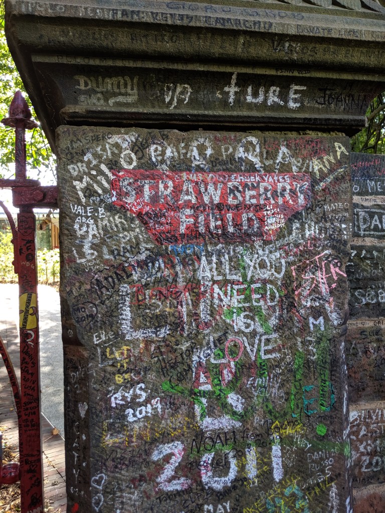 The gate to Strawberry Field, with all its fan graffiti. The land now contains a visitor’s center (we did not stop, alas) and its entrance fee goes to helping young adults with learning disabilities.