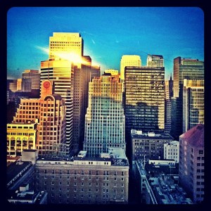 This here’s a good example: a picture of downtown San Francisco at the end of a sunny day. It was taken in January of this year, but with the magic of an iPhone and the Instagram app, it suddenly looks like it was taken with a Polaroid camera sometime in 1977. There’s a slight discoloration you’re not quite sure of (maybe a little sienna from sunfade?), maybe a bit of surface scratch, maybe a bit of graininess, and definitely a lot of color oversaturation. It looks like a picture found in your family photo album that you’d forgotten about. It’s the latest app that everyone loves and uses heavily if they have iProducts. [The rest of us need to use Photoshop, but I’m not complaining.]